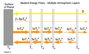 An astute and suspicious reader might notice that in section 4 I argued “The only way around this logic [that pressure cannot increase temperature] is if the atmosphere spontaneously creates energy out of nothing, and uses this something-from-nothing energy to increase the energy flow 𝑃𝑖𝑛Pin to the surface”; yet in section 7 I argued that radiative recirculation of energy could increase the power flow to the planetary surface, without any new energy being introduced. Am I sneakily applying a double-standard to different arguments?