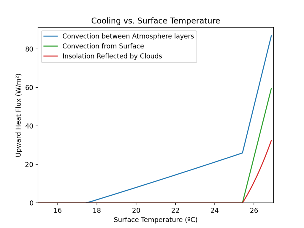 - When convection occurs at the surface, this is assumed to lead to cloud formation which leads to reflection of shortwave radiation from the Sun. This increase in albedo is assumed to be proportional to how much the temperature difference exceeds 𝚪H.