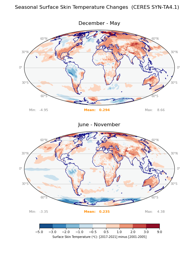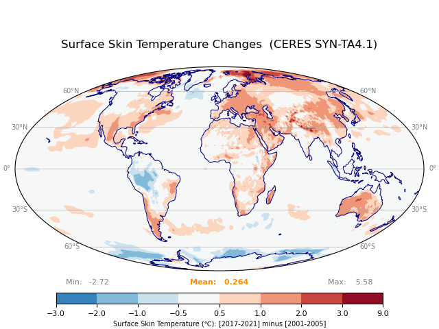 This page includes maps of climate-related quantities for the period 2001-2021. See also Explorations: Maps of Quantities Relevant to Earth’s Albedo.